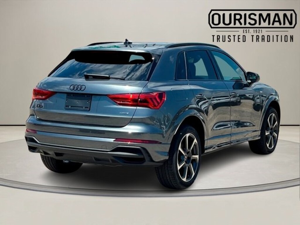 2025 Audi Q3 Premium Plus ABS brakes, Active Cruise Control, Alarm w/Motion Sensor, Alloy wheels, Audi Advanced Key, Audi Beam-Rings, Auto-Dimming Power-Folding Exterior Mirrors, Auto-Dimming Rear-View Mirror, Black Exterior Mirrors, Black Exterior Trim & Badges, Black Optic Plus Package, Black Roof Rails, Carbon Inlays, Convenience Package, Driver Seat Memory, Electronic Stability Control, Front dual zone A/C, Garage Door Opener (HomeLink), Heated door mirrors, Heated Front Bucket Seats, Heated front seats, Illuminated entry, LED Interior Lighting Package, LED Interior Lighting Plus Package, Low tire pressure warning, Power Liftgate, Premium Plus Package, Remote keyless entry, SiriusXM, SONOS Premium Sound System w/3D Sound, Sport Front Bucket Seats w/S Embossing, Stainless Steel Pedal Caps, Top View Camera System, Traction control, Wheels: 19" 7-Spoke-Rotor-Design, Wireless Phone Charging Pad. 20/28 City/Highway MPG