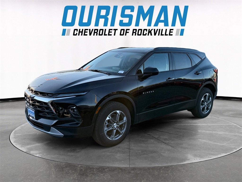 This NEW 2025 Black Chevrolet Blazer LT FWD is well equipped and includes these features and benefits:Convenience Package (Adaptive Cruise Control, Black Roof-Mounted Side Rails, Enhanced Automatic Emergency Braking, Inside Rear-View Auto-Dimming Mirror, Rear Power Programmable Liftgate, Universal Home Remote, and Wireless Charging), Driver Confidence Package (Lane Change Alert w/Side Blind Zone Alert, Rear Cross Traffic Alert, and Rear Park Assist w/Audible Warning), Preferred Equipment Group 2LT, 170 Amp Alternator, 3.47 Final Drive Axle Ratio, 4-Way Manual Front Passenger Seat Adjuster, 4-Wheel Disc Brakes, 6 Speakers, 6-Speaker Audio System Feature, 8-Way Power Driver Seat Adjuster, ABS brakes, Air Conditioning, Alloy wheels, AM/FM radio: SiriusXM with 360L, Apple CarPlay/Android Auto, Auto High-beam Headlights, Automatic temperature control, Brake assist, Bumpers: body-color, Child-Seat-Sensing Airbag, Compass, Delay-off headlights, Driver door bin, Driver vanity mirror, Dual front impact airbags, Dual front side impact airbags, Electronic Stability Control, Emergency communication system: OnStar and Chevrolet connected services capable, Four wheel independent suspension, Front & Rear Black Bowties, Front anti-roll bar, Front Bucket Seats, Front Center Armrest, Front dual zone A/C, Front reading lights, Fully automatic headlights, Heated door mirrors, Heated Driver & Front Passenger Seats, Heated front seats, Illuminated entry, Knee airbag, Leather Shift Knob, Low tire pressure warning, Occupant sensing airbag, Outside temperature display, Overhead airbag, Overhead console, Panic alarm, Passenger door bin, Passenger vanity mirror, Power door mirrors, Power Driver Lumbar Control, Power driver seat, Power steering, Power windows, Premium audio system: Chevrolet Infotainment 3 Plus, Premium Cloth Seat Trim, Radio data system, Radio: Chevrolet Infotainment 3 Plus System, Rear anti-roll bar, Rear reading lights, Rear seat center armrest, Rear window defroster, Rear window wiper, Remote keyless entry, Ride & Handling Suspension, Security system, SiriusXM w/360L, Speed control, Speed-sensing steering, Split folding rear seat, Spoiler, Steering wheel mounted audio controls, Stop-Start Engine Control System, Tachometer, Telescoping steering wheel, Tilt steering wheel, Traction control, Trip computer, Variably intermittent wipers, Voltmeter, and Wheels: 18 Grazen Metallic Aluminum. 22/29 City/Highway MPG 9-Speed Automatic with Overdrive 2.0L TurbochargedNew Vehicle Prices do not include tax, tags, title, freight/destination, registration, electronic filing fee, processing fee of $800 (Not required by law), and iKon (Optional $1,295.) Call Sales Managers for any additional questions at 301-424-5900. See dealer for rebate eligibility. Price includes rebates applicable to qualifying customers.$1000 - Customer Cash. Exp. 11/03/2025