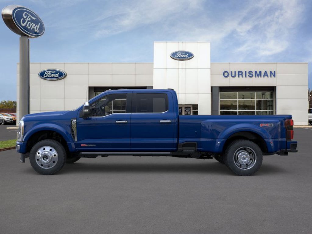 F-450 Platinum Plus Crew Cab 4x4, 6.7 Liter High Output V8 Diesel Engine, Smoked Truffle Leather Seats, Twin Panel Moonroof, FX4 Off Road Package, 14,000 GVWR, Snow Plow Prep, Argon Blue.