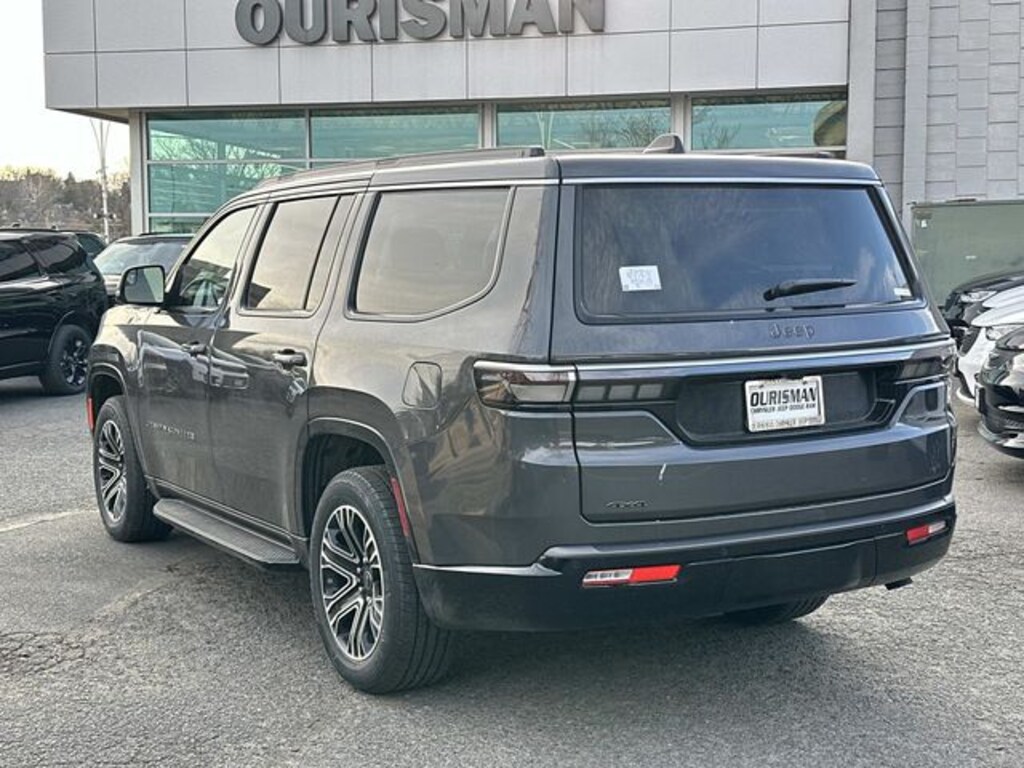 118 Mph Maximum Speed Calibration, 3 Panel Sunroof, 3.55 Rear Axle Ratio, 3rd Row 60/40 Power Recline Seat, 3rd row seats: bench, 4-Wheel Disc Brakes, 9 Speakers, ABS brakes, Air Conditioning, Alloy wheels, AM/FM radio: SiriusXM with 360L, Anti-whiplash front head restraints, Apple CarPlay/Android Auto, Audio memory, Auto Adjust in Reverse Exterior Mirrors, Auto High-beam Headlights, Auto Power Folding Exterior Mirrors, Auto Power Folding Mirrors, Auto-dimming door mirrors, Auto-Dimming Exterior Driver Mirror, Auto-dimming Rear-View mirror, Auto-leveling suspension, Automatic temperature control, Brake assist, Bumpers: body-color, Cargo Cover, Compass, Cruise control, Delay-off headlights, Driver door bin, Driver vanity mirror, Driver's Seat Mounted Armrest, Dual front impact airbags, Dual front side impact airbags, Electronic Stability Control, Emergency communication system: Jeep Connect, Exterior Mirrors Approach Lamps, Exterior Mirrors with Memory, Exterior Mirrors with Supplemental Signals, Exterior Parking Camera Rear, Four wheel independent suspension, Front anti-roll bar, Front Bucket Seats, Front Center Armrest w/Storage, Front dual zone A/C, Front fog lights, Front reading lights, Fully automatic headlights, Garage door transmitter, Heated door mirrors, Heated Exterior Mirrors, Heated front seats, Heated steering wheel, Illuminated entry, Interior Rear Facing Camera, Knee airbag, Leather Trimmed Bucket Seats, Low tire pressure warning, Luxury Front and Rear Floor Mats, Memory seat, MyFlexCare Service Plan, Navigation System, Normal Duty Suspension, Occupant sensing airbag, Outside temperature display, Overhead airbag, Overhead console, P and P Park and Unpark Assist with Stop System, Panic alarm, Passenger door bin, Passenger seat mounted armrest, Passenger vanity mirror, Power door mirrors, Power driver seat, Power Liftgate, Power passenger seat, Power steering, Power windows, Premium Group I, Quick Order Package 29E Grand Wagoneer, Radio data system, Radio: Uconnect 5 Nav with 12.0" Display, Rain sensing wipers, Rear air conditioning, Rear anti-roll bar, Rear reading lights, Rear seat center armrest, Rear window defroster, Rear window wiper, Reclining 3rd row seat, Remote keyless entry, Reversible Carpet/Vinyl Cargo Mat, Security system, Side Distance Warning, Speed-sensing steering, Speed-Sensitive Wipers, Split folding rear seat, Steering wheel memory, Steering wheel mounted audio controls, Surround View Camera System, Tachometer, Telescoping steering wheel, Tilt steering wheel, Traction control, Trip computer, Turn signal indicator mirrors, Variably intermittent wipers, Ventilated front seats, Voltmeter, Wheels: 20" x 9" Machine Face Painted Aluminum.
