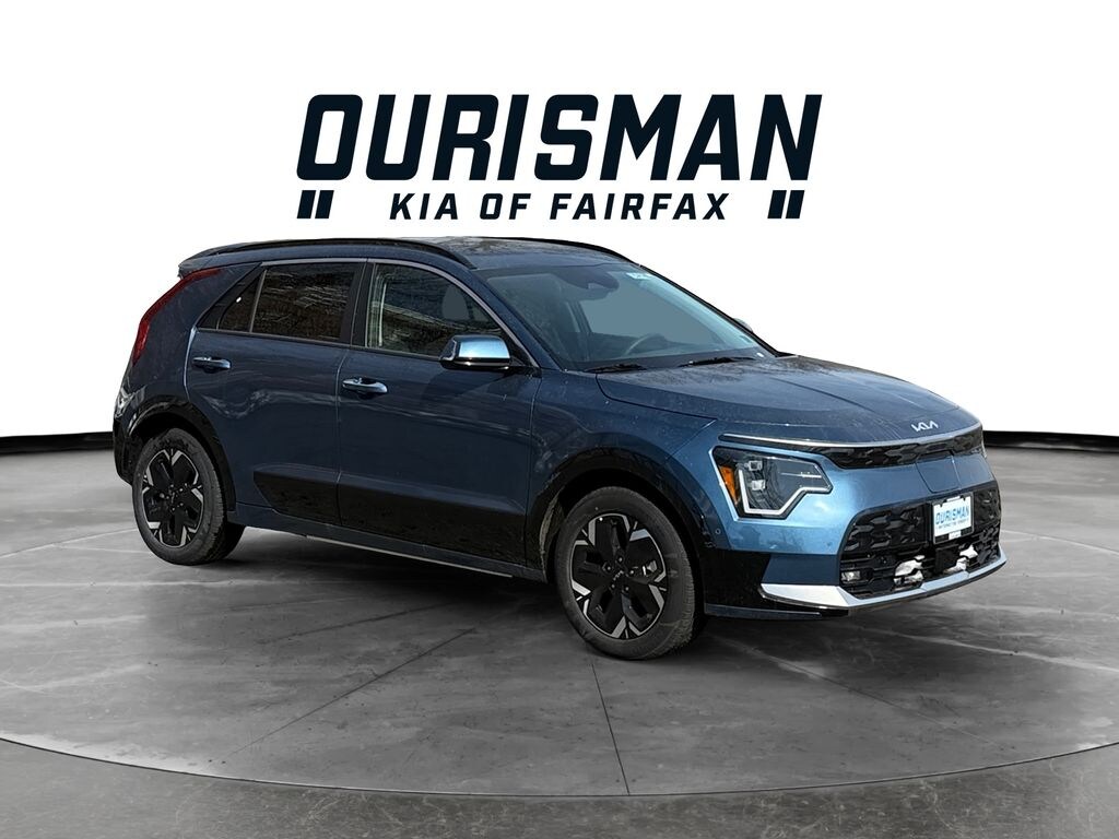 Check out all these Options: Wave Preserve Package (Heat Pump and Heated Rear Seats), Niro EV Wave In Stock, 4D Sport Utility, Electric Motor, 1-Speed Automatic, FWD, Mineral Blue, Charcoal Leather, 4-Wheel Disc Brakes, 8 Speakers, ABS brakes, Air Conditioning, Alloy wheels, AM/FM Radio, AM/FM radio: SiriusXM, Apple CarPlay & Android Auto, Auto High-beam Headlights, Auto-dimming Rear-View mirror, Automatic temperature control, Brake assist, Bumpers: body-color, Carpeted Floor Mats, Delay-off headlights, Driver door bin, Driver vanity mirror, Dual front impact airbags, Dual front side impact airbags, Electronic Stability Control, Emergency communication system: Kia Connect (includes 1 year free trial), Four wheel independent suspension, Front anti-roll bar, Front Bucket Seats, Front Center Armrest, Front dual zone A/C, Front fog lights, Front reading lights, Fully automatic headlights, Garage door transmitter: HomeLink, harman/kardon® Speakers, Heads-Up Display, Heated & Ventilated Front Bucket Seats, Heated door mirrors, Heated front seats, Heated steering wheel, Illuminated entry, Knee airbag, Low tire pressure warning, Memory seat, Navigation System, Occupant sensing airbag, Outside temperature display, Overhead airbag, Overhead console, Panic alarm, Passenger door bin, Passenger vanity mirror, Perforated Vegan Leather-Trimmed Seats, Power door mirrors, Power driver seat, Power Liftgate, Power moonroof, Power passenger seat, Power steering, Power windows, Rain sensing wipers, Rear anti-roll bar, Rear seat center armrest, Rear window defroster, Rear window wiper, Remote keyless entry, Security system, Speed control, Speed-sensing steering, Split folding rear seat, Spoiler, Steering wheel mounted audio controls, Telescoping steering wheel, Tilt steering wheel, Traction control, Trip computer, Turn signal indicator mirrors, Variably intermittent wipers, Ventilated front seats, and Wheels: 7.0J x 17" Aero Alloy.
