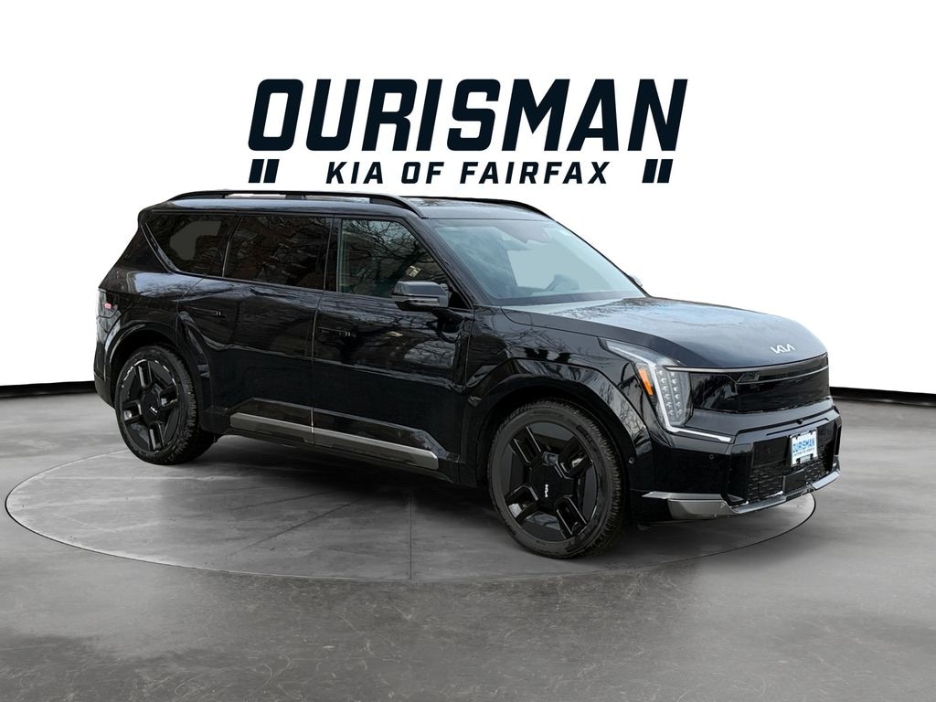 Check out all these Options: EV9 GT-Line In Stock, 4D Sport Utility, Electric, 1-Speed Automatic, AWD, Ebony Black, Brown/Black Leather, 14 Speakers, 3rd row seats: split-bench, 4-Wheel Disc Brakes, ABS brakes, Air Conditioning, Alloy wheels, AM/FM radio: SiriusXM, Apple CarPlay & Android Auto, Auto High-beam Headlights, Auto-dimming door mirrors, Auto-dimming Rear-View mirror, Auto-leveling suspension, Automatic temperature control, Brake assist, Bumpers: body-color, Carpeted Floor Mat, 6-Passenger, Delay-off headlights, Driver door bin, Driver vanity mirror, Dual front impact airbags, Dual front side impact airbags, Electronic Stability Control, Emergency communication system: 911 Connect, Exterior Parking Camera Rear, Four wheel independent suspension, Front anti-roll bar, Front Bucket Seats, Front Center Armrest w/Storage, Front dual zone A/C, Front reading lights, Full SynTex Leather Seat Trim, Fully automatic headlights, Garage door transmitter: HomeLink, GT-Line Tow Hitch, Heads-Up Display, Heated & Ventilated Front Bucket Seats, Heated door mirrors, Heated front seats, Heated rear seats, Heated steering wheel, Illuminated entry, Knee airbag, Low tire pressure warning, Memory seat, Navigation System, Occupant sensing airbag, Outside temperature display, Overhead airbag, Overhead console, Panic alarm, Passenger door bin, Passenger vanity mirror, Power door mirrors, Power driver seat, Power Liftgate, Power moonroof, Power passenger seat, Power steering, Power windows, Radio data system, Radio: AM/FM/HD Radio/SiriusXM, Rain sensing wipers, Rear air conditioning, Rear anti-roll bar, Rear reading lights, Rear seat center armrest, Rear window defroster, Rear window wiper, Reclining 3rd row seat, Remote keyless entry, Security system, Speed control, Speed-sensing steering, Split folding rear seat, Spoiler, Steering wheel memory, Steering wheel mounted audio controls, Telescoping steering wheel, Tilt steering wheel, Traction control, Trip computer, Turn signal indicator mirrors, Variably intermittent wipers, Ventilated front seats, Ventilated rear seats, and Wheels: 21" Black & Dark Silver Finish Alloy.