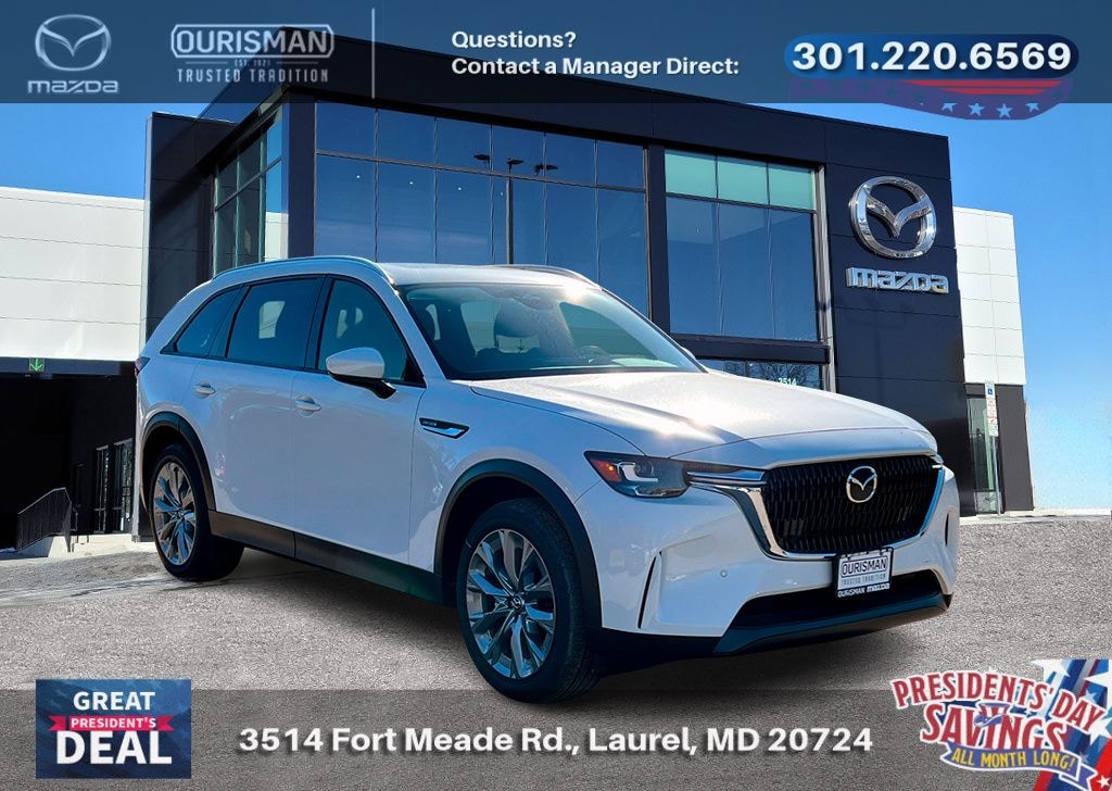 White 2026 Mazda CX-90 3.3 Turbo Preferred AWD 8-Speed Automatic I6 Turbo SUNROOF/MOONROOF, BLUETOOTH/HANDS FREE, REAR VIEW CAMERA/BACKUP CAMERA, BLIND SPOT MONITORING SYSTEM, LANE KEEP ASSIST/LANE MITIGATION/ACTIVE LANE ASSIST, HEATED SEATS, APPLE CARPLAY/ANDROID AUTO, PRE-COLLISION SYSTEM/BRAKE SYSTEM, LEATHER INTERIOR, ACTIVE CRUISE CONTROL/ADAPTIVE CRUISE CONTROL, 3RD ROW SEATING/7 PASSENGER/8 PASSENGER, POWER LIFT GATE/POWER TAILGATE, AWD, ALL WHEEL DRIVE, POWER ADJUSTABLE SEATS, ADVANCED KEYLESS ENTRY, REAR CROSS TRAFFIC ALERT, SMARTPHONE WIRELESS CHARGER.
