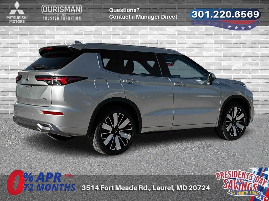 Silver Metallic 2025 Mitsubishi Outlander SEL 4WD CVT 2.5L I4 DOHC 16V LEV3-ULEV50 181hp NAVIGATION/NAVI/NAV SYSTEM/GPS, SUNROOF/MOONROOF, BLUETOOTH/HANDS FREE, REAR VIEW CAMERA/BACKUP CAMERA, BLIND SPOT MONITORING SYSTEM, LANE KEEP ASSIST/LANE MITIGATION/ACTIVE LANE ASSIST, HEATED SEATS, COOLED SEATS/VENTILATED SEATS, APPLE CARPLAY/ANDROID AUTO, PRE-COLLISION SYSTEM/BRAKE SYSTEM, PREMIUM PACKAGE, PANO/PANORAMIC/EXTENDED MOONROOF, 360 VIEW CAMERA/SURROUND VIEW CAMERA/BIRD'S EYE VIEW CAMERA, LEATHER INTERIOR, ACTIVE CRUISE CONTROL/ADAPTIVE CRUISE CONTROL, HEATED STEERING WHEEL, 3RD ROW SEATING/7 PASSENGER/8 PASSENGER, POWER LIFT GATE/POWER TAILGATE, AWD, ALL WHEEL DRIVE, PREMIUM SURROUND SOUND SYSTEM, POWER ADJUSTABLE SEATS, ADVANCED KEYLESS ENTRY, REAR CROSS TRAFFIC ALERT, SMARTPHONE WIRELESS CHARGER, 4WD.