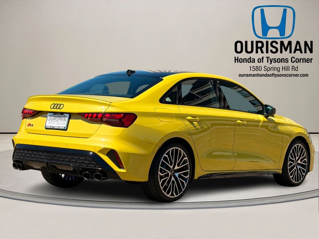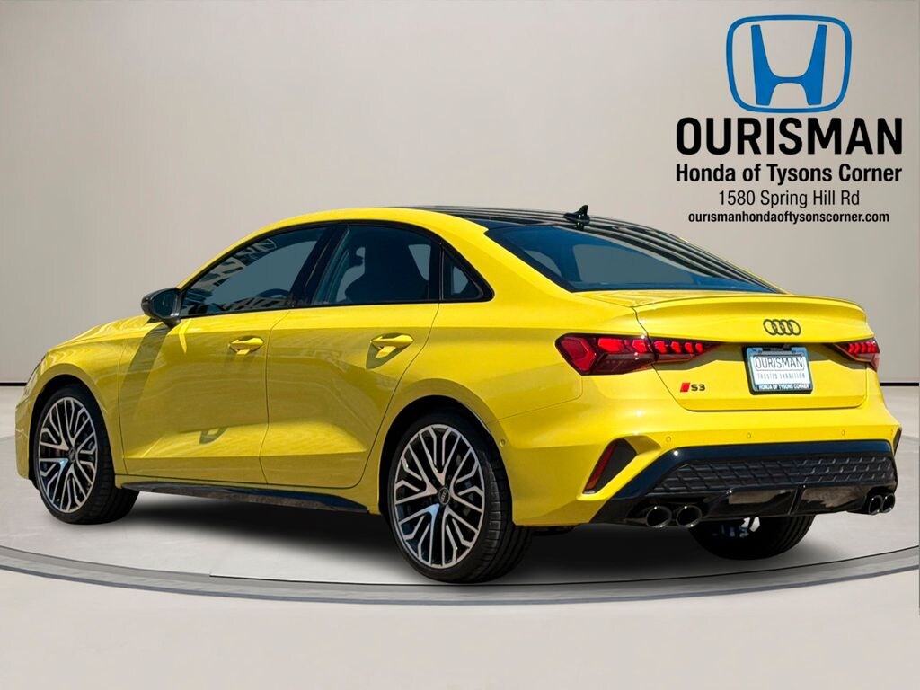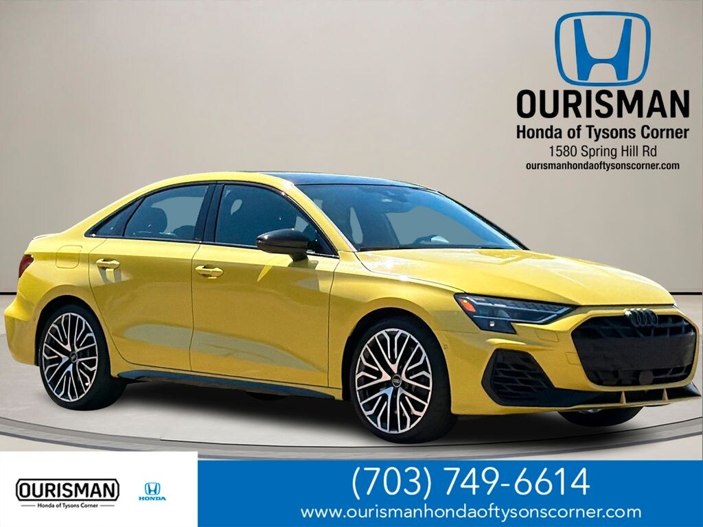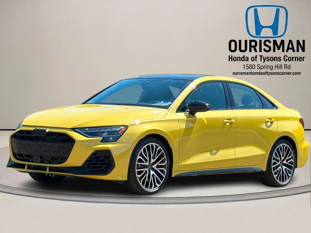 ONE OWNER, CLEAN CARFAX, FACTORY WARRANTY, LIKE NEW, DEALER WARRANTY INCLUDED!, 4-Wheel Disc Brakes, 6 Speaker Sound System, 6 Speakers, ABS brakes, Adaptive Cruise Assist, Adaptive Cruise Assist with Lane Guidance, Air Conditioning, Alloy wheels, AM/FM radio, Animation For Headlights and Taillights, Anthracite Audi Rings, Audi Advanced Key, Audi App Store, Audi Connect NAV and PLUS, Audi MMI Navigation Plus, Audi Virtual Cockpit Plus, Auto High-beam Headlights, Auto-Dimming Power Folding Exterior Mirrors, Auto-Dimming Rear-View Mirror, Automatic temperature control, Black Exterior Mirror Housings, Black Exterior Trim, Black Optic Package, Black Roof, Brake assist, Bumpers: body-color, Convenience Package, Dark Chrome Exhaust Tips, Delay-off headlights, Driver door bin, Driver vanity mirror, Dual front impact airbags, Dual front side impact airbags, Electronic Stability Control, Emergency communication system: Audi connect CARE, Exterior Parking Camera Rear, Fine Nappa Leather Seating Surfaces, Fine Nappa Leather Seats w/Rock Gray Stitch, Four wheel independent suspension, Front anti-roll bar, Front Bucket Seats, Front Center Armrest, Front dual zone A/C, Front reading lights, Fully automatic headlights, Hands-on Detection For Steering Wheel, Head-Up Display, Headlight cleaning, Heated door mirrors, Heated front seats, Heated Front Sport Seats, HomeLink Garage Door Opener, Illuminated entry, Knee airbag, Leather steering wheel, Leatherette/Dinamica Seats w/Diamond Stitching, Low tire pressure warning, Matrix-Design LED Headlights, Memory For Driver's Seat, Occupant sensing airbag, Outside temperature display, Overhead airbag, Overhead console, Panic alarm, Passenger door bin, Passenger vanity mirror, Power door mirrors, Power driver seat, Power moonroof, Power passenger seat, Power steering, Power windows, Prestige Package, Radio data system, Radio: MMI with 10.1" Touchscreen Display, Rain sensing wipers, Rear air conditioning, Rear anti-roll bar, Rear fog lights, Rear reading lights, Rear seat center armrest, Rear side impact airbag, Rear window defroster, Remote keyless entry, Security system, SiriusXM with 360L, SONOS Sound System, Speed control, Speed-sensing steering, Speed-Sensitive Wipers, Split folding rear seat, Spoiler, Sport steering wheel, Steering wheel mounted audio controls, Tachometer, Technology Package, Telescoping steering wheel, Tilt steering wheel, Traction control, Traffic Sign Recognition, Trip computer, Turn signal indicator mirrors, Variably intermittent wipers, Wheels: 19" Multispoke-S-Design, Wireless Phone Charging Pad. 2025 Audi S3 2.0T Prestige quattro quattro Python Yellow Metallic 2.0L 4-Cylinder TFSI
