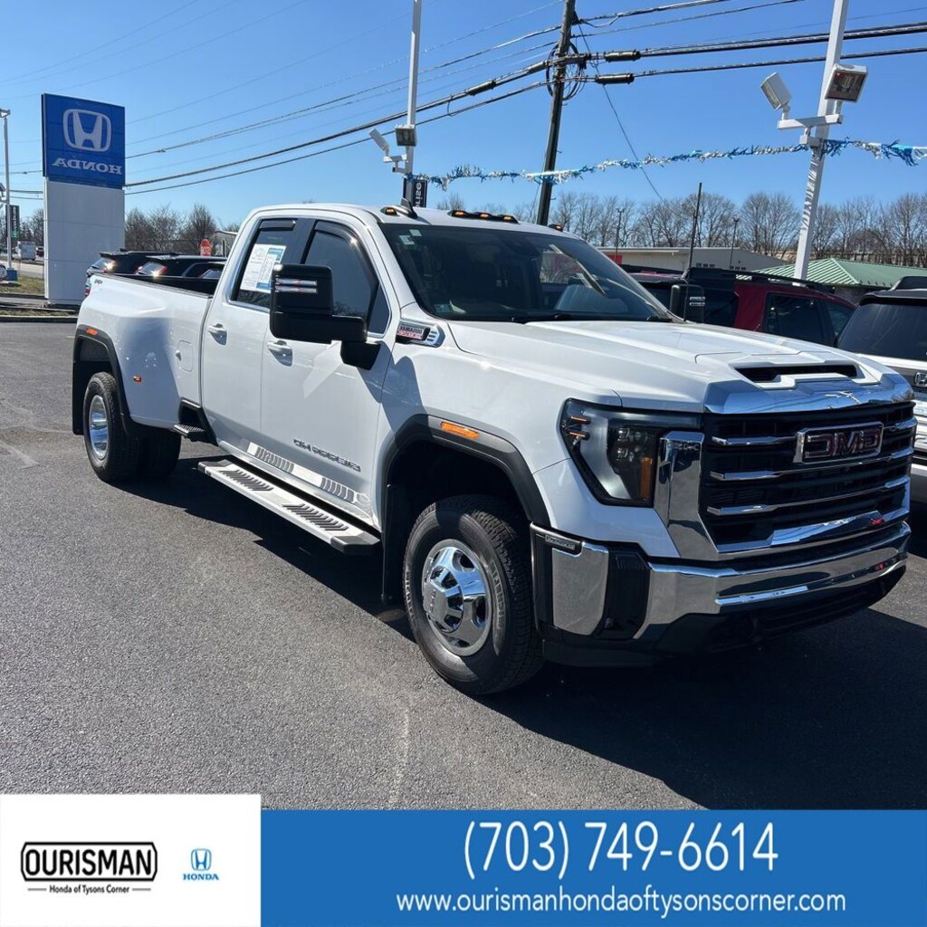 ONE OWNER, CLEAN CARFAX, LIKE NEW, DEALER WARRANTY INCLUDED!, 10-Speed Automatic, 4WD, 10-Way Power Driver Seat Adjuster w/Lumbar, 120-Volt Bed Mounted Power Outlet, 120-Volt Instrument Panel Power Outlet, 2 Charge-Only Rear USB Ports, 2 Charge/Data USB Ports, 2-Speed Electronic Shift Transfer Case, 220 Amp Alternator, 3.42 Rear Axle Ratio, 4-Way Manual Driver Seat Adjuster, 4-Way Manual Passenger Seat Adjuster, 4-Wheel Disc Brakes, 6 Speakers, 6-Speaker Audio System Feature, ABS brakes, Air Conditioning, All-Weather Floor Liners (LPO), AM/FM radio: SiriusXM with 360L, Apple CarPlay/Android Auto, Auto High-beam Headlights, Automatic Emergency Braking, Brake assist, Buckle to Drive, Bumpers: chrome, Chrome Surround Grille w/Chrome Insert Bars, Cloth Seat Trim, Compass, Deep-Tinted Glass, Delay-off headlights, Driver door bin, Driver vanity mirror, Dual front impact airbags, Dual front side impact airbags, Dual-Zone Automatic Climate Control, Electric Rear-Window Defogger, Electronic Stability Control, Engine Block Heater, Exhaust Brake, Following Distance Indicator, Forward Collision Alert, Front 40/20/40 Split-Bench Seats w/Lockable Storage, Front anti-roll bar, Front Center Armrest w/Storage, Front Pedestrian Braking, Front reading lights, Front wheel independent suspension, Fully automatic headlights, GMC Premium 13.4" Diagonal Information Display, Gooseneck/5th Wheel Prep Package, HD Rear Vision Camera Delete, Heated door mirrors, Heated Driver & Front Outboard Passenger Seats, Heated Steering Wheel, Heavy-Duty 80 Amp-Hr Battery, Illuminated entry, Integrated Trailer Brake Controller, IntelliBeam Automatic High Beam On/Off, Keyless Open & Start, Lane Departure Warning System, LED Fog Lamps, Low tire pressure warning, Manual Tilt-Wheel Steering Column, Manual Tilt-Wheel/Telescoping Steering Column, Occupant sensing airbag, Outside temperature display, Overhead airbag, Overhead console, Panic alarm, Passenger door bin, Passenger vanity mirror, Pickup Bed, Power door mirrors, Power steering, Power windows, Preferred Equipment Group 3SA, Premium audio system: Premium GMC Infotainment System, Push Button Start, Radio: AM/FM w/Premium GMC Infotainment System, Rear reading lights, Rear step bumper, Remote keyless entry, Remote Start Package, Remote Vehicle Starter System, SiriusXM w/360L, SLE Convenience Package, SLE Heat Package, SLE Value Package, Snow Plow Prep/Camper Package, Speed control, Split folding rear seat, Spray-On Pickup Bedliner w/GMC Logo, Steering Wheel Audio Controls, Steering wheel mounted audio controls, Suspension Package, Tachometer, Tilt steering wheel, Traction control, Trip computer, Turn signal indicator mirrors, Unauthorized Entry Theft-Deterrent System, Upfitter Switch Kit (5), Variably intermittent wipers, Voltmeter, Winter Grille Cover, Wireless Phone Projection. 2024 GMC Sierra 3500HD SLE 4WD Summit White Duramax 6.6L V8 Turbodiesel