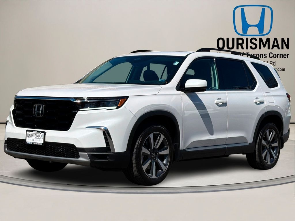 ONE OWNER, CLEAN CARFAX, FACTORY WARRANTY, HONDA SENSING, LIKE NEW, DEALER WARRANTY INCLUDED!, AWD, 12 Speakers, 3rd row seats: split-bench, 4-Wheel Disc Brakes, 4.167 Axle Ratio, ABS brakes, Adaptive Cruise Control: Adaptive Cruise Control (ACC) with Low-Speed Follow, Air Conditioning, Alloy wheels, AM/FM radio: SiriusXM, Apple CarPlay/Android Auto, Auto High-beam Headlights, Auto-dimming Rear-View mirror, Automatic temperature control, Blind Spot Information (BSI) System warning, Bose Premium Sound System, Brake assist, Bumpers: body-color, Compass, Delay-off headlights, Driver door bin, Driver vanity mirror, Dual front impact airbags, Dual front side impact airbags, Electronic Stability Control, Emergency communication system: HondaLink, Exterior Parking Camera Rear, Four wheel independent suspension, Front anti-roll bar, Front Bucket Seats, Front Center Armrest, Front dual zone A/C, Front fog lights, Front reading lights, Fully automatic headlights, Garage door transmitter: HomeLink, Heated door mirrors, Heated Front Bucket Seats, Heated front seats, Honda Satellite-Linked Navigation System, HondaLink Subscription Services, Illuminated entry, Knee airbag, Lane departure: Lane Keeping Assist System (LKAS) active, Leather Seat Trim, Low tire pressure warning, Memory seat, Navigation system: Honda Satellite-Linked Navigation System, Occupant sensing airbag, Outside temperature display, Overhead airbag, Overhead console, Panic alarm, Passenger door bin, Passenger vanity mirror, Power door mirrors, Power driver seat, Power Liftgate, Power moonroof, Power passenger seat, Power steering, Power windows, Radio data system, Rear air conditioning, Rear anti-roll bar, Rear reading lights, Rear seat center armrest, Rear window defroster, Rear window wiper, Reclining 3rd row seat, Remote keyless entry, Security system, SiriusXM, Speed control, Speed-sensing steering, Speed-Sensitive Wipers, Split folding rear seat, Spoiler, Steering wheel mounted audio controls, Tachometer, Telescoping steering wheel, Tilt steering wheel, Traction control, Trip computer, Turn signal indicator mirrors, Variably intermittent wipers, Wheels: 20" Shark Gray Machine Face with Black Lug Nuts. 2025 Honda Pilot Touring AWD Platinum White Pearl 3.5L V6 DOHC 24V