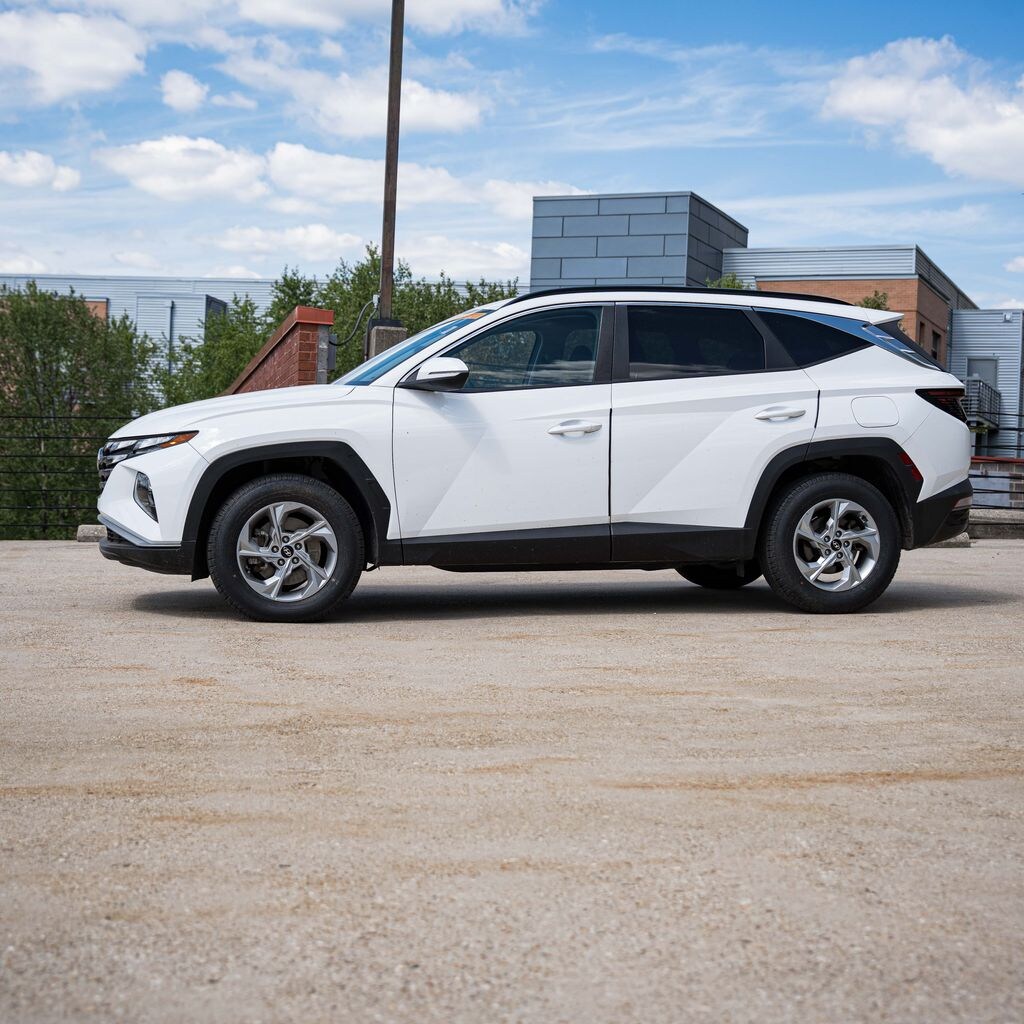 Experience the perfect blend of modern style and everyday utility with this 2023 Hyundai Tucson SEL. Finished in elegant Serenity White Pearl with a clean black interior, this one-owner SUV is equipped with the advanced HTRAC All-Wheel Drive system for confidence in all weather conditions. Having covered 38,400 miles, this vehicle features a consistent maintenance history, including regular oil changes and professional care.
